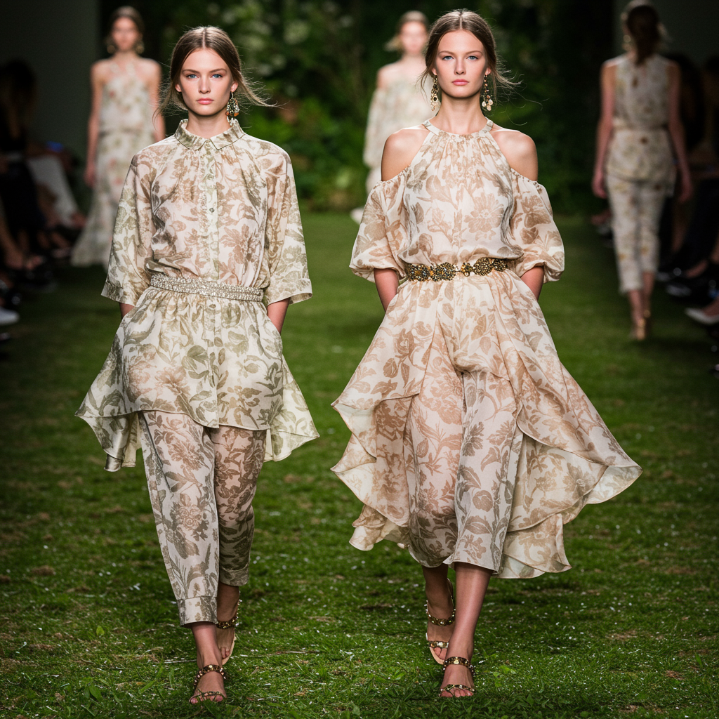 Envision a fashion collection that captures the timeless elegance of nature by drawing inspiration from the graceful forms of botanical elements. Designs integrate intricate floral patterns and organic textures, using natural color palettes that reflect the earth's subtle beauty. Silhouettes are reminiscent of petals and leaves, with flowing, layered fabrics that mirror the delicate yet robust nature of plants. Outfits are accented with embellishments resembling dew drops and sunlight, intertwining luxury and nature seamlessly. Each piece in the collection is crafted to evoke the serene yet vibrant energy of a lush garden, offering an ultimate expression of sophistication and harmony with the natural world.