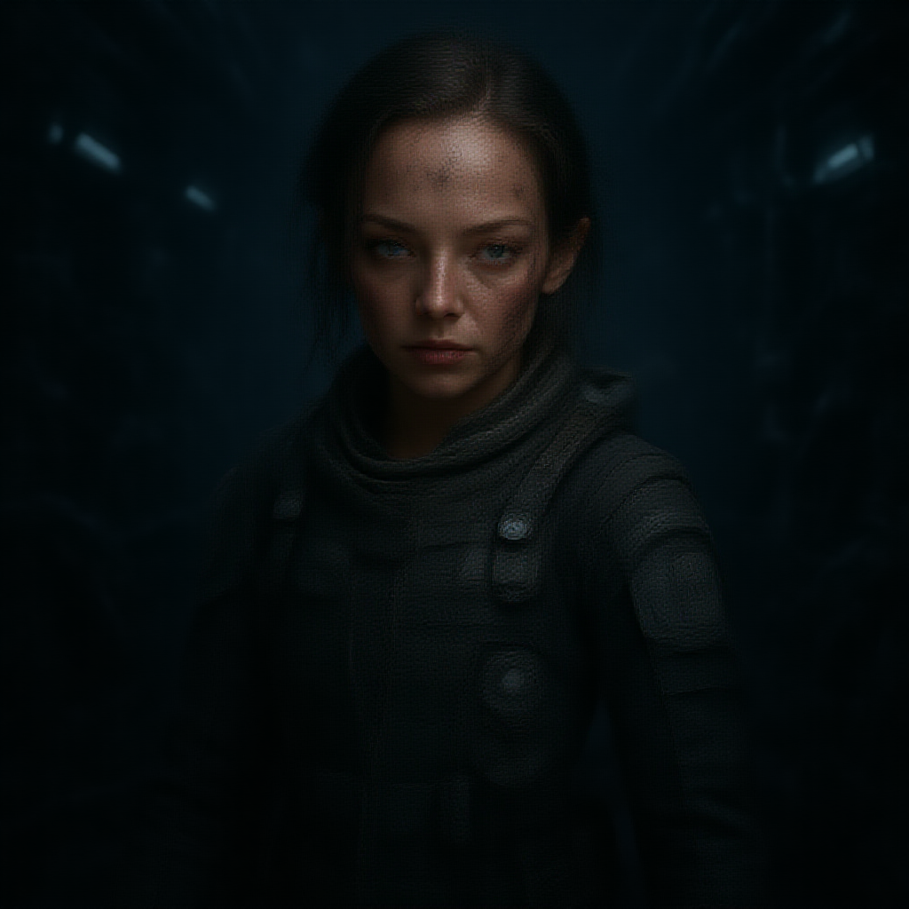 Epic cinematic 8k wallpaper of Ellen Ripley from the Alien movie, her face determined and focused, adorned in a highly detailed and ornate space suit, subtle beads of sweat on her cheeks and forehead emphasizing the tension. Her symmetrical features are captured beautifully as she strikes a dynamic pose within the intricate and atmospheric interiors of the Nostromo spaceship. The scene epitomizes sci-fi grandeur with ultra-realistic detail, enhanced by cutting-edge Ray Tracing technology and photorealistic VFX post-production. Shot using a Canon 5D for promotional art quality, the lighting employs advanced overcast reflection mapping, embodying movie-grade realism and a cinematic feel that immerses the viewer in a stunning 8K visual experience.