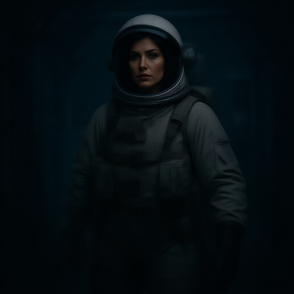 Epic cinematic 8k wallpaper of Ellen Ripley from the Alien movie, wearing an astronaut suit with helmet on and visor closed, standing in the Nostromo space shuttle interiors, photorealistic with cinematic movie quality, enhanced through VFX post-production, featuring RTX ray tracing lighting, ultra-realistic and hyper-detailed imagery in HD and HDR, captured in 4k and 8k resolution using a Mitchell BNC camera, with an octane render finish, emphasizing atmospheric shadows and soft highlights to enhance the suspenseful and mysterious ambiance.