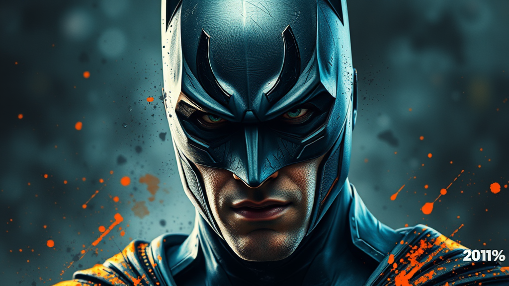 Epic portrait of Batman, inspired by trending styles on ArtStation; features splash paint splatter with sharp focus and studio-like photo quality. Showcases intricate details and high complexity, drawing from the artistic influences of WLOP and Greg Rutkowski, gaining prominence on ArtStation with sharp focus, studio photography, and meticulous detail.