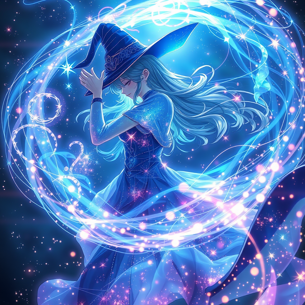 Ethereal high school witch entwined in shimmering, iridescent magic as swirling patterns and galaxies of starlight dance around her luminescent, eerily glowing body, in a cinematic shot that takes full advantage of rich, vibrant colors and 8k ultra high definition, featuring razor-sharp focus, gleaming highlights, and sparkling details reminiscent of lavish artwork by Granblue Fantasy and robustly detailed backgrounds by Studio Ghibli's maximalist style with over-the-top fine details and especially optimized scenes in scenes contrasting between light and shadow in in-re worked environments fully rounding out the excessive spectrum of uplifting bright colors combined with persona conviction.