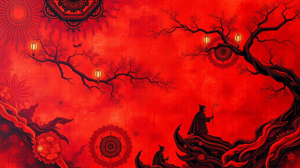Explore the mesmerizing realm of digital art wonders, infused with rich symbolism and the essence of Indonesian artistry, where illusionary paintings captivate the senses. In this vivid tapestry, red tones dominate, delivering hyper-detailed and hyper-realistic visuals that transcend reality. This ultra-detailed, ultra-realistic creation bursts into a cinematic experience, extending into the 4th dimension, offering the highest level of detail and quality.