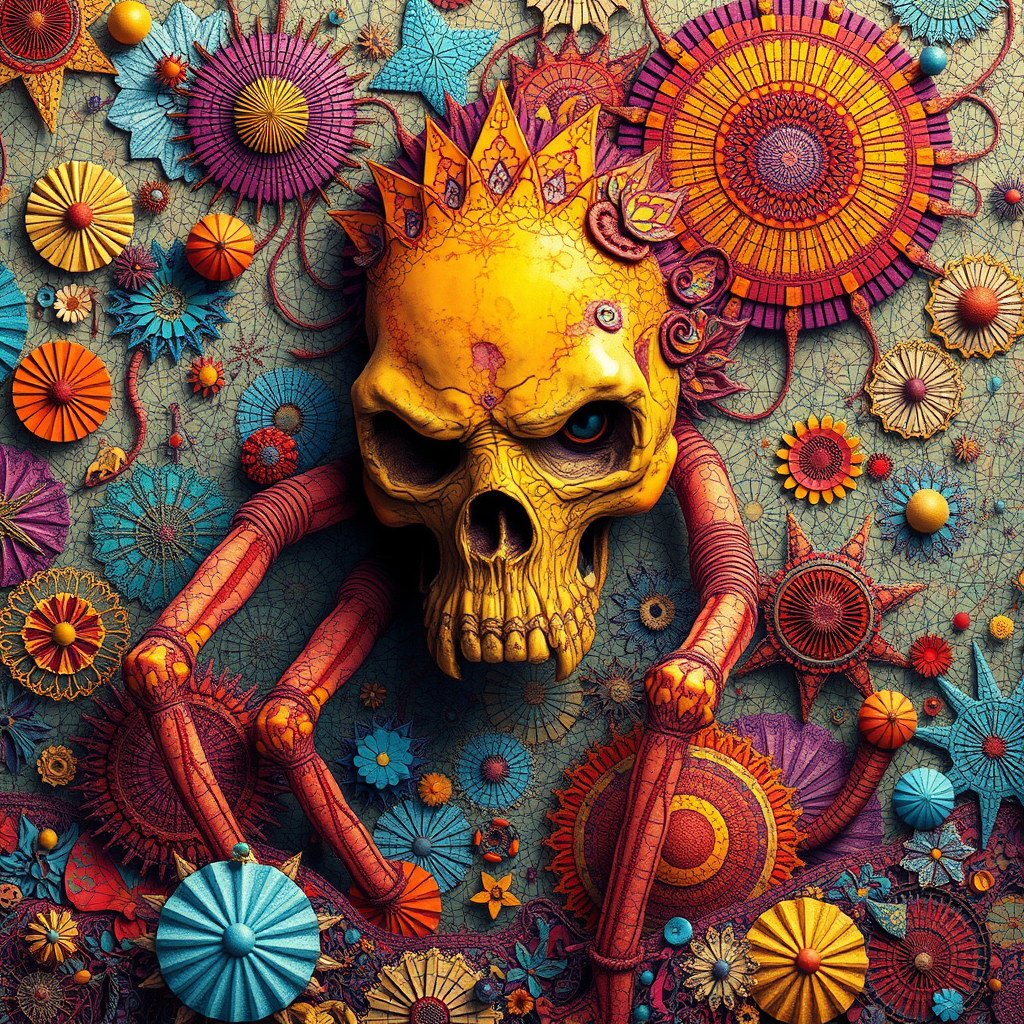 Explore the realm of intricate and vibrant artistry inspired by Carne Griffiths, where detailed patterns and playful textures come to life in a colorful tapestry. Embrace a unique visual effect, rich with optical mixing and high resolution. Amidst this vivid scenery, find the anomalous beauty in exaggerated forms—extra limbs, fused appendages, oversized features. The delicate balance between distortion and creativity invites an exploration of unconventional anatomy. Abstract geometry and lively composition play together in a surreal, almost cinematic spectacle. Despite the chaos, each detail contributes to a cohesive, lively masterpiece, echoing the vibrant spirit of imaginative art.