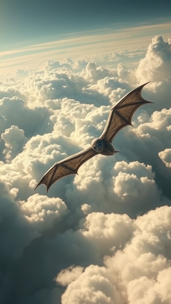 View this AI-generated image featuring falkor soaring gracefully amidst billowing clouds captured in exquisite detail expansive ultra wide perspective dramatic cinematic lighting enhancing the mythical atmosphere. Created using advanced AI technology, this image showcases creative visuals, AI artwor