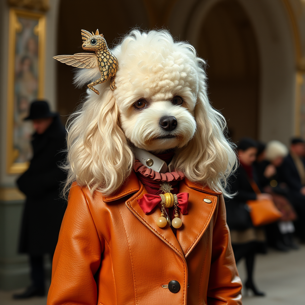 Fall 2017 Paris Fashion Week, captured through the lens of Irving Penn, explores the theme of ivory elegance intertwined with the bold eccentricity of poodlepunk. This visual narrative blends influences from 1860 to 1969, showcasing a juxtaposition of luxurious leather and hide with whimsical elements reminiscent of Richard Doyle's fantastical artwork. The collection features an array of ready-made pieces that merge historical fashion elements with a raw, unrefined aesthetic, all presented in a 2:3 aspect ratio to evoke a sense of timelessness and artistic sophistication.