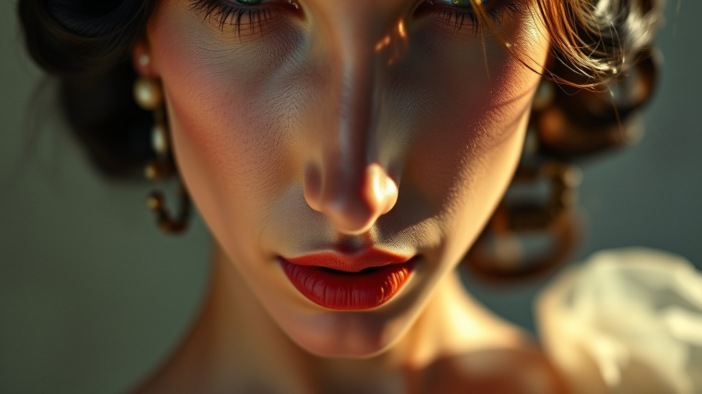 Fashion close up of a model inspired by Lillian Bassman, featuring dimensional light and fully symmetrical composition, capturing the whole body in a style reminiscent of Serge Lutens, with subtle elements of surrealism and ethereal elegance.