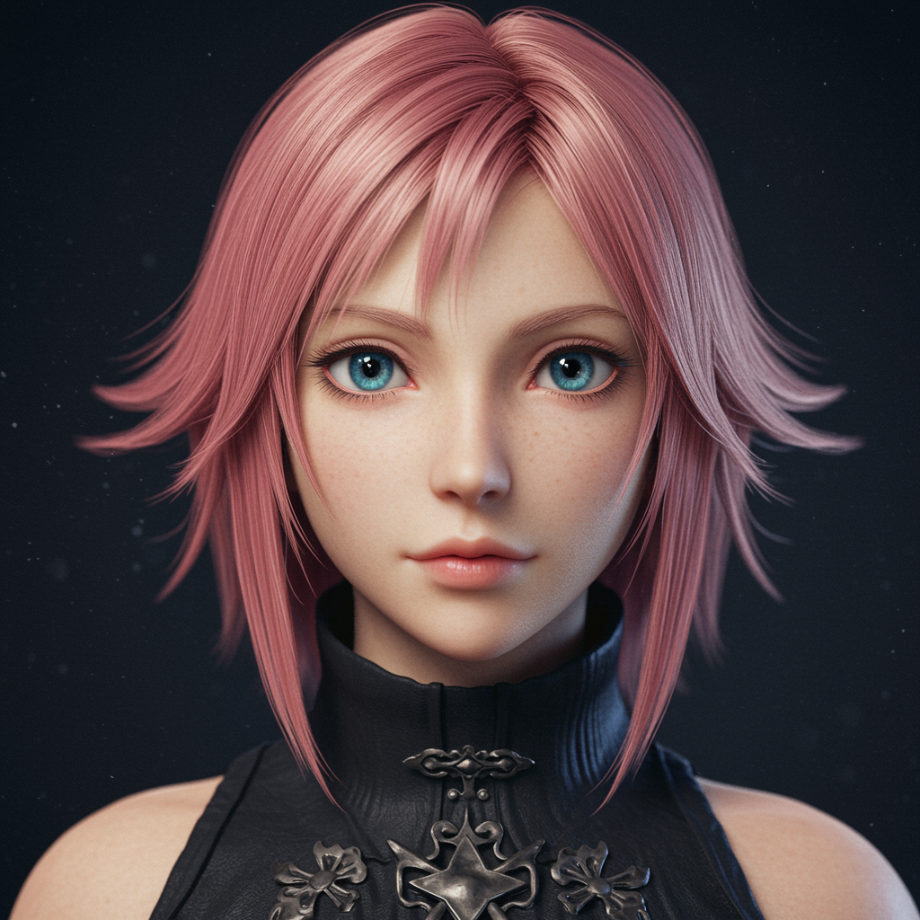 Final Fantasy aesthetic, high detail, vibrant RAW color imagery, ultra-high resolution, intricately detailed CGI in 8K, utilizing physics-based rendering, cinematic lighting, with captivating and beautifully detailed eyes, 3D model, reminiscent of a doll, avoiding low-quality elements like low resolution, text, cropping, and JPEG artifacts, ensuring beauty and coherence without duplicates, morbid elements, mutilation, or out of frame aspects. The focus is on perfect anatomy and proportions, avoiding any extra or missing limbs, ensuring hands are well-drawn and faces are flawlessly depicted, maintaining harmony and elegance in every detail.
