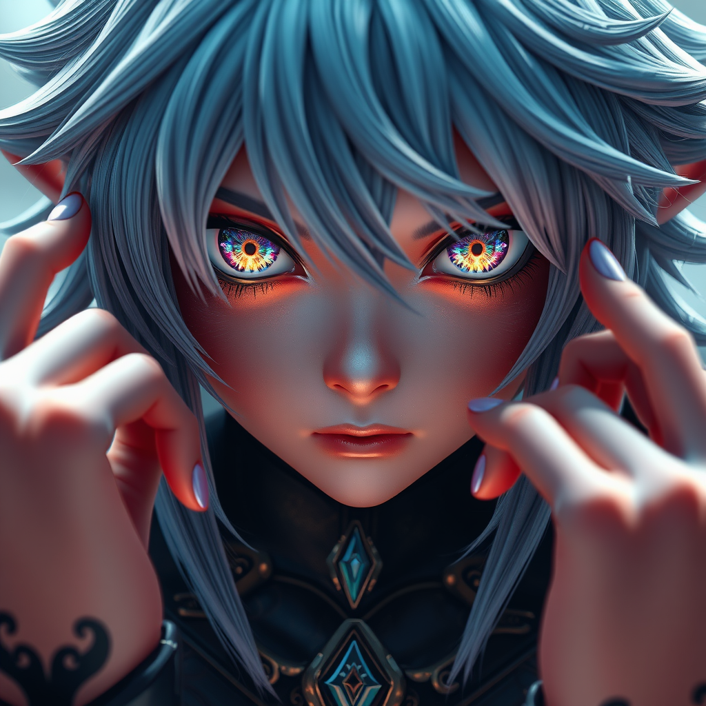 Final fantasy-inspired high detail ultra high resolution 8K wallpaper, featuring a breathtaking character with beautiful, intricately detailed eyes and cinematic lighting. The scene is crafted with physics-based rendering for a lifelike appearance. The character is designed with precise anatomy, balanced proportions, and artfully rendered hands and face. The 3D image showcases a harmonious blend of vibrant colors and exceptional clarity, creating an immersive, captivating visual experience free from imperfections such as blurriness, distortions, or unnatural anatomy.
