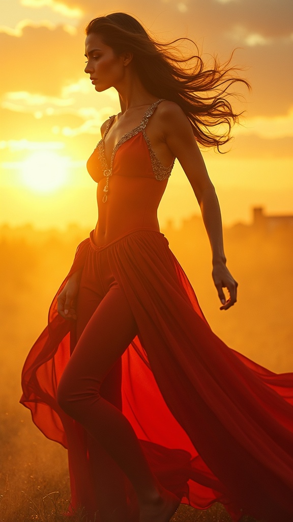 Fine arts oil painting, side angle, dramatic accent lighting, captured from a lower perspective, hyperdetailed and hyper realistic. An epic action-filled full body portrait of a stunningly beautiful woman as a matador in sleek, form-fitting attire. Influenced by the essence of corrida; dynamic, intense, and raw emotion in rich, cinematic color grading. Photorealistic and breathtaking in 8k, akin to a photo shot on a Canon EOS-1D X Mark III. This artwork resonates with the spirit of a Shutterstock contest winner, combining the intricate techniques of Mark Keathley with the vibrancy of Thom Wasserman's photographic style. Imagined as taken with a Fujifilm GFX 100S medium format mirrorless camera, using the GF 32-64mm f/4 R LM WR lens at a focal length of 45mm, capturing the enchanting scene with exceptional detail and clarity. The complementary camera settings showcase soft morning light: an aperture of f/5.6, ISO 200, and a shutter speed of 1/125 sec. The warm sun bathes the subject in delicate shadows and dappled light, adding depth and enchantment. A celebration of harmony between nature and vibrant splendor, set against a peaceful backdrop of a golden, dew-kissed morning with a powder yellow pastel sky. A fusion of cinematic 35mm style, reminiscent of James Jean and Jean-Honore Fragonard, with creative elements that elevate the core concept.