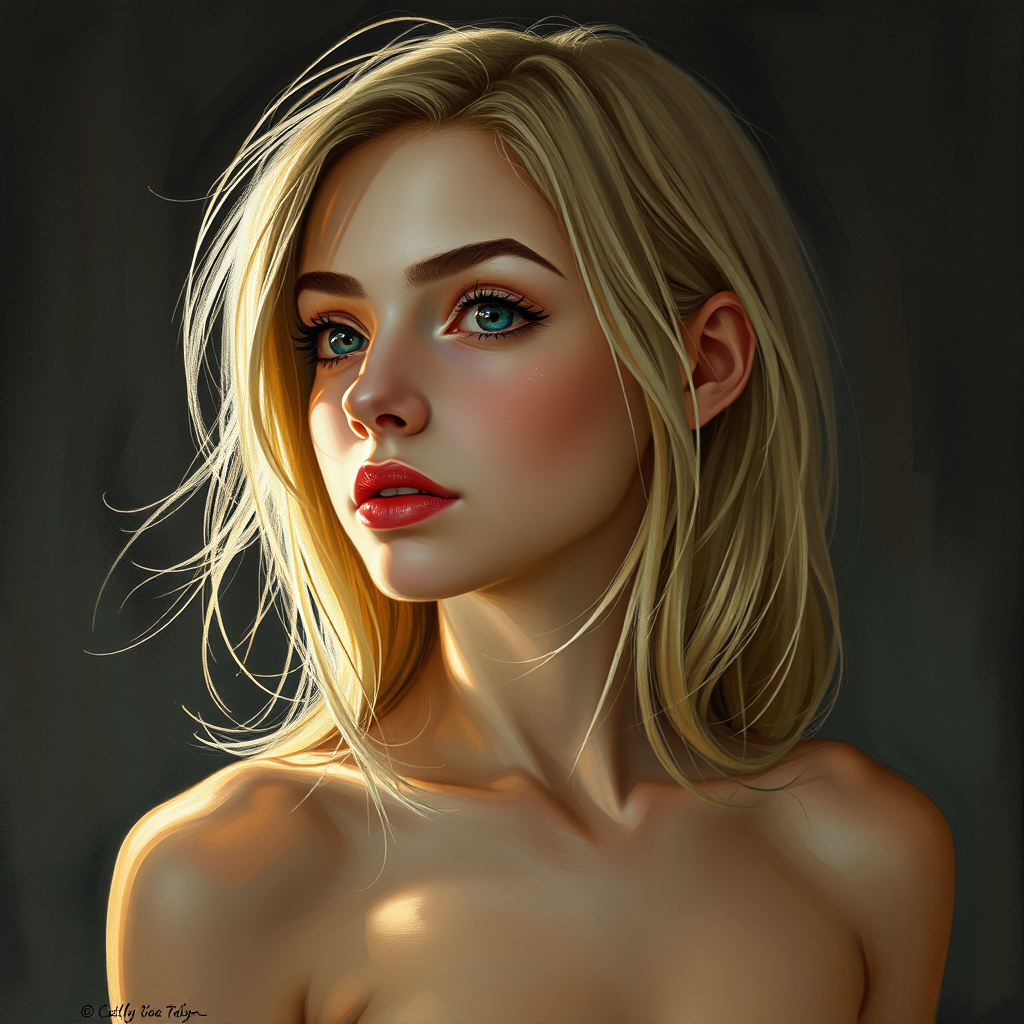 finely detailed, dramatic rembrandt lighting, surrealist painting, abstract art, conceptual drawing, ray tracing, 1girl, young american woman, blonde hair, 21 years old, medium figure, imaginative drawings, stylized cartoons, contemporary graphics, artistic collage, experimental proportions, expressive letter elements, tasteful nudity, creative interpretation.