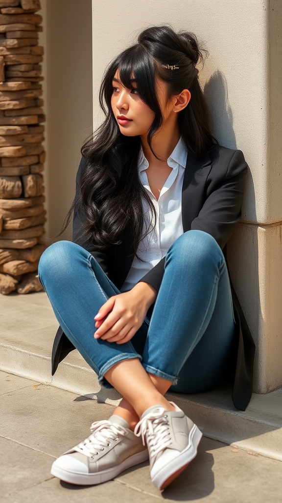 FlorencePugh3 Half-Up Half-Down: black hair This versatile hairstyle allows you to effortlessly combine elegance and ease by securing the top portion of your hair with a stylish clip while letting the rest flow freely. Perfect for both school and social gatherings. The Sitting/Leaning Pose: Choose a cozy or visually interesting spot like a bench, staircase, or wall to sit or lean against. Relax your posture, cross your legs or lean casually, showcasing your natural charisma. This pose adds a laid-back yet polished touch to your photos. Casual-Chic: Blend comfort with a hint of sophistication by pairing high-quality essentials like well-fitted jeans with a crisp white button-down shirt and a tailored blazer. Add some flair with statement accessories or fashionable sneakers for a stylish and relaxed everyday look. Venice Beach: Embrace the vibrant and diverse energy of Venice Beach, ideal for capturing unique photos. Take advantage of the colorful graffiti along the Venice Boardwalk, pose near the iconic palm trees, or enjoy the sandy beach backdrop with the ocean breeze enveloping you. Ultra-high resolution, real shadow, captured with a Canon EOS R6 at 135mm, 1/1250s, f/2.8, ISO 400 smiling, curly hair, afro, bangs, featuring men and children.