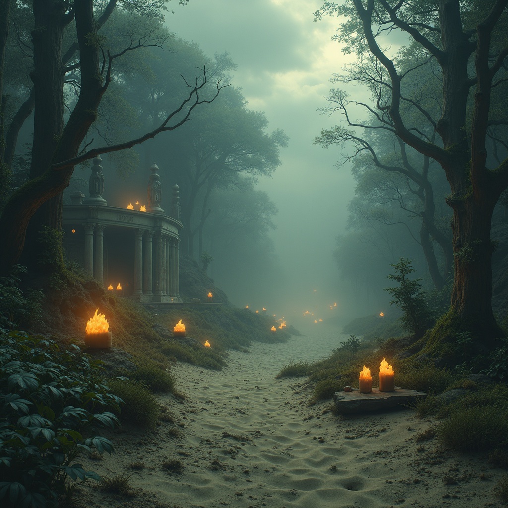 Forest, fog, witches, high contrast photograph, shifting sands, glowing lights, deformed sketch-like water forms, industrial elements, gold and crystal jewelry, mystic fantasy ambiance, cyberpunk and steampunk fusion, detail-rich concept art, echoes of Alice in Wonderland, thunderous clouds, tumultuous storm, a blend of modern and ancient architecture, ivory and marble textures, an ethereal paradise, awe-inspiring visuals, organic and rusted elements, rendered in octane, high contrast masterpiece, fantastical and surreal atmosphere.