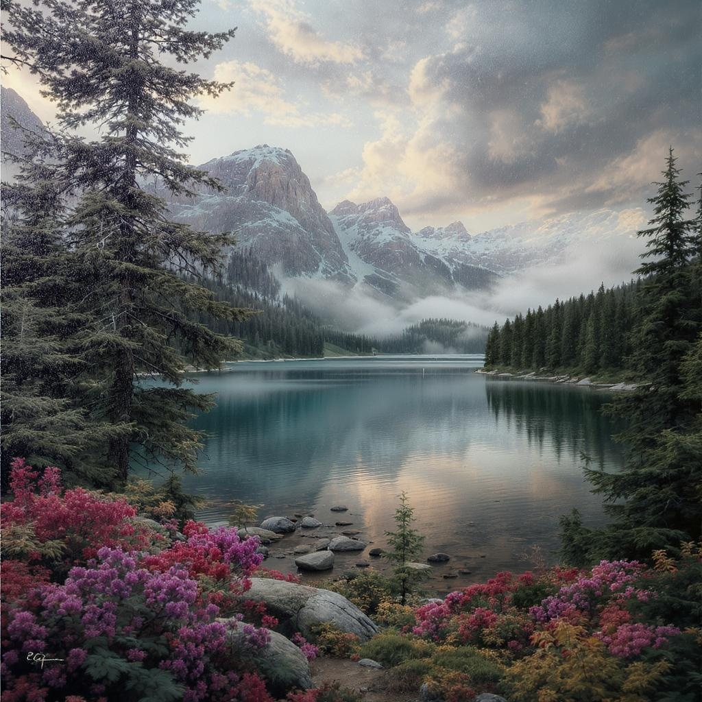 Forest hill lake masterpiece in best quality with high detail CG unity 8k wallpaper, textured landscape, highly detailed as seen in Mark Lague’s painting, concept art with 8k uhd capturing dslr finesse, film grain effect for a magnificent scene with maximum details, artistry blends high resolution, evoking depth in nature’s beauty through imaginative brushstrokes, cinematic allure, seamless unity of colors, shapes, and light.