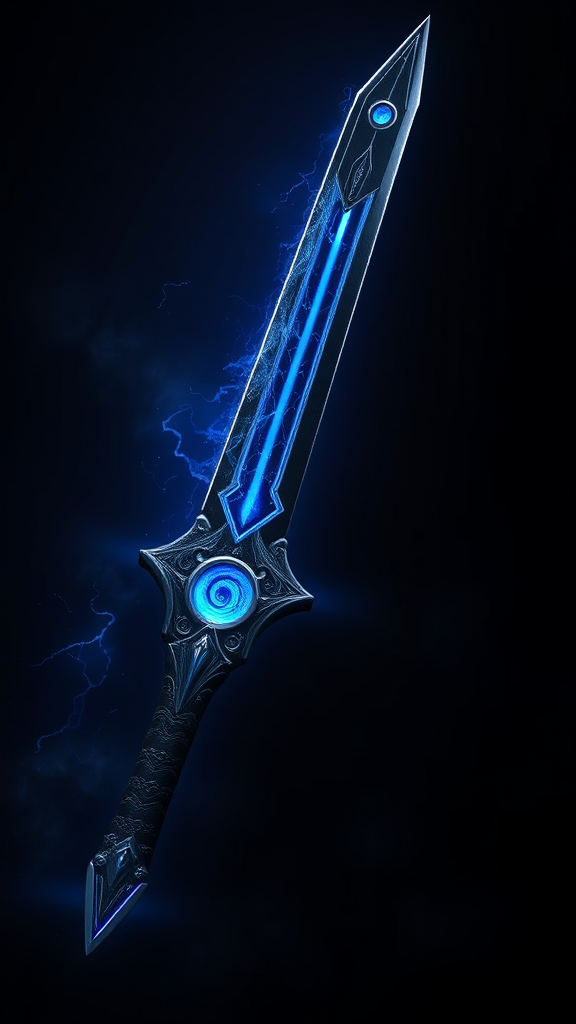 Forged from the essence of the cosmos, this legendary weapon wields the power to harness dark energy and command the forces of the universe, summoning portals to the void. An extraordinary fusion of advanced technology and arcane sorcery, its sleek, midnight-black blade seems to drink in the very light around it, while luminescent indigo veins pulse rhythmically throughout its length. The hilt, intricate with celestial engravings suggesting spiraling nebulae, cradles a levitating core of shadowy energy, which exudes an unsettling gravitational allure. When invoked, the weapon warps the fabric of space, sending waves of distortion rippling through reality, and with a mere swing, it can unleash miniature rifts into oblivion, engulfing all in their wake. A sublime instrument of devastation and cosmic supremacy, it commands reverence and dread from mortals and deities alike.