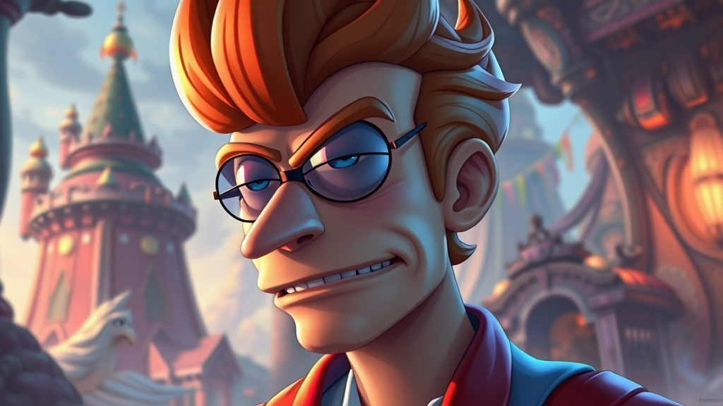 Fry from Futurama reimagined in a fantasy setting, featuring intricate and elegant details, in a highly detailed digital painting style. Inspired by artstation concept art and matte illustrations with a focus on sharp clarity. Designed to evoke the aesthetic of Hearthstone cards, rendered in stunning HDR 4k and 8k resolution, capturing a world of vibrant colors and imaginative landscapes.