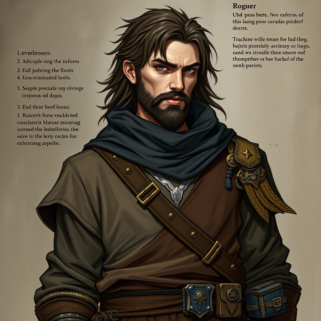 full body character sheet detailed male portrait rogue class fantasy role-playing game balanced features dungeon crawler Dungeons and Dragons
