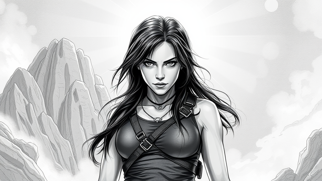 Full body Lara Croft manga comic book black and white pencil sketch detailed intricate trending on artstation cinematic masterpiece photography stunning environment lineart evocative award winning shiny smooth surreal divine celestial elegant oil painting soft fascinating fine art official art cgi 3d doll octane render dynamic pose captivating expression captivating background ethereal lighting refined composition breathtaking atmosphere intricate patterns artful elegance perfect balance harmonious design.