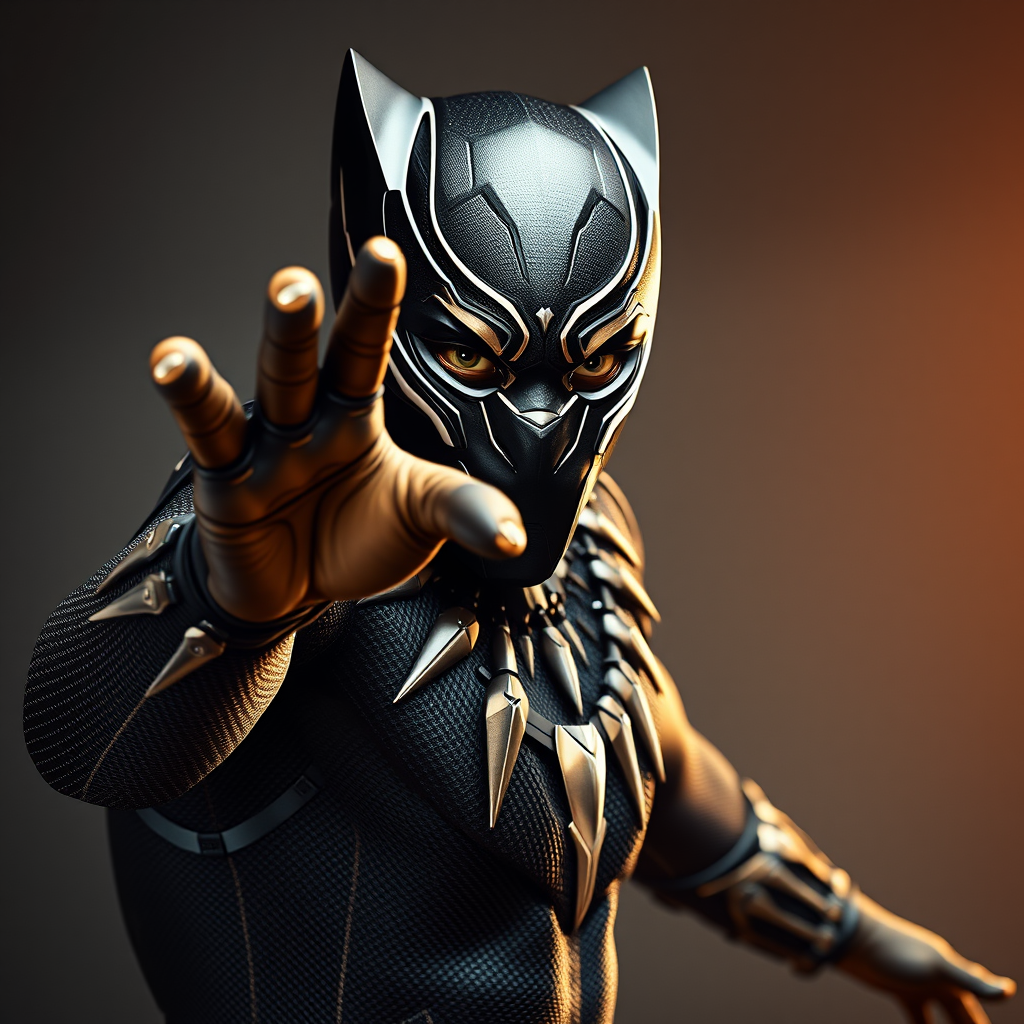 Full body portrait of Chadwick Boseman as Black Panther, striking a dynamic pose, vibrant and detailed, with cinematic lighting. The image is hyperrealistic and focused, boasting extreme attention to details as if created in unreal engine 5. Itβs a masterpiece in a low-quality draft style, featuring intentional peculiarities like extra limbs and exaggerated features. The portrait includes elements that are out of frame with a sense of artistic chaos, reflecting a mix of realism and surrealism. It showcases a blend of strong colors and soft blurring, emphasizing uniqueness through creative anatomy and unusual positioning. Despite these quirks, the essence of a heroic and powerful Black Panther is preserved amidst the abstract execution. Elements of mismatch and distortion are added artistically to induce a sense of alternative reality, embedding a layer of complex, artistic depth.