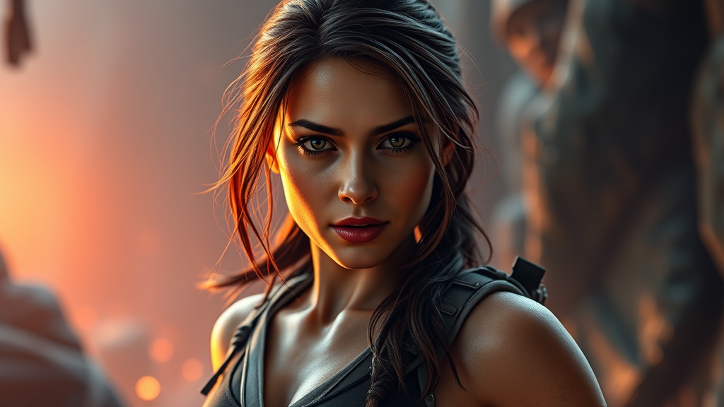 Full body portrait of Jessica Alba as Lara Croft Tomb Raider, captured in 8k ultra-realistic detail with a touch of cinematic magic. An immersive atmosphere comes to life with lens flares and a vibrant glow. The scene is intricately detailed, bursting with color, and features artful cinematic lighting that makes it a trending masterpiece on platforms like ArtStation. Using the power of Unreal Engine 5 and the precision of hyperrealistic CGI, Lumen reflections enhance the composition, offering a breathtaking, photorealistic environment. This stunning visual representation combines the elegance of photography with 3D artistry, rendered through Octane for an impeccable finish. While maintaining accurate anatomy and design, the piece veers away from imperfections like blurry details, extra limbs, and deformations, resulting in a focused, hyper-detailed character portrait set within a mesmerizing scenery.