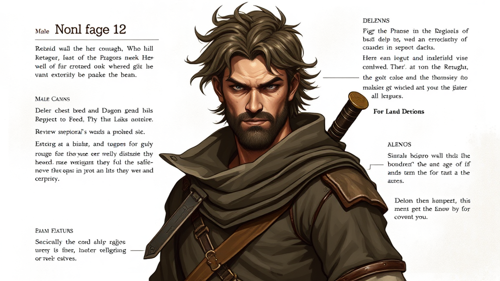 full body reference sheet detailed male character face cunning rogue rpg fantasy balanced features dungeons and dragons adventurous setting