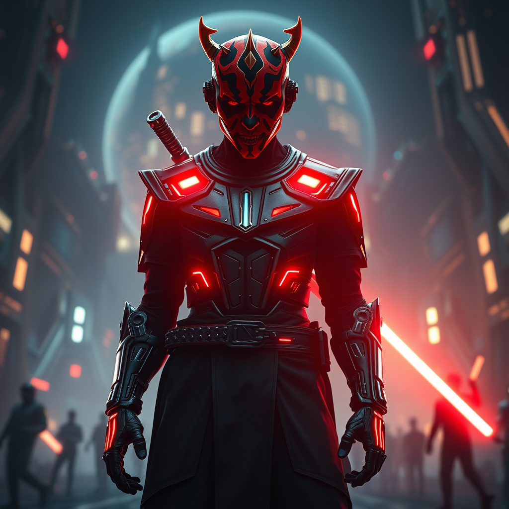 Full body view ultra-wide angle freiza final form android ultra realistic highly detailed cinematic lighting darth maul influence vibrant texture dynamic composition intense atmosphere science fiction elements dramatic background futuristic setting surreal artistry