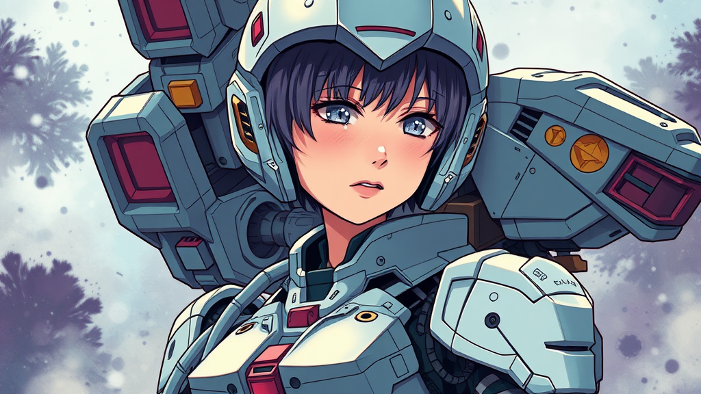 full length portrait of an armored space girl with a futuristic suit, detailed comic book style battle mech, exquisite fanart of a tearful cyborg woman, vibrant full color with manga visual flair, anime key aesthetic, inspired by valerian nartfixer, emphasizing intricate design and emotional depth.