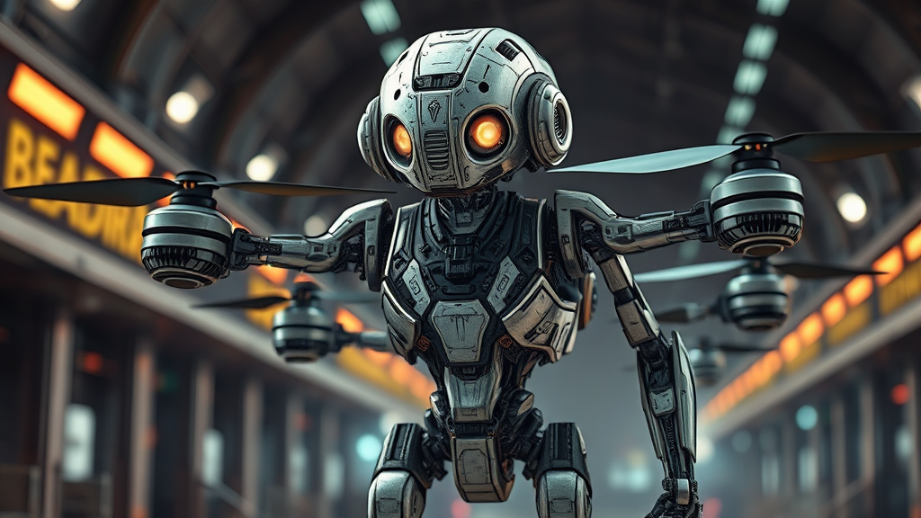 Futuristic sci-fi drone robot machine bumper, full-body, cinematic scene with dramatic lighting and color grading, featuring a poorly drawn and distorted cathedral robot. The robot appears mutated and disfigured with an abstract and grotesque design, showcasing a blend of baroque and Manet influences in a cartoonish sketch style. The composition highlights its blurry, deformed anatomy, emphasizing an intense, captivating, and uniquely ugly appearance.