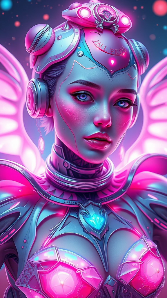 Futuristic whimsical portrait 8k photo, stunning luminous ethereal cosmic ballerina clowncore Russian cyborg university girl, harmonious proportions, sci-fi, fantasy, cyberpunk, intricately detailed, opulent, highly refined, digital painting, ethereal vibe, ultra-realistic render, artstation level, concept illustration, seamless, crisp focus, art by artgerm, loish, wlop with an imaginative twist, capturing elegance and otherworldliness.
