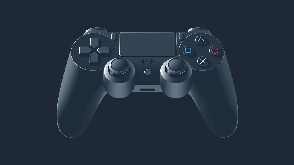 Game controller emblem in vector form, inspired by minimalist sculpture, with a color palette of dark gray and deep navy. The design features precise perspective, emphasizing engineering and construction elements. The form is tactile, reminiscent of Henry Moore's style, suggesting both functionality and artistry.