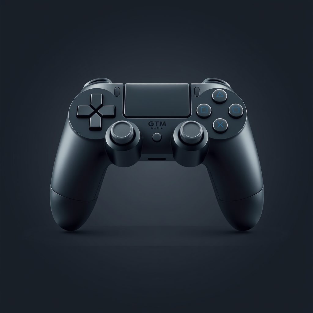 game controller emblem vector, inspired by minimalist sculpture, dark gray and deep navy palette, exact perspective, engineering and design influence, tactile sensation, reminiscent of henry moore style, slight artistic variation on a classic theme