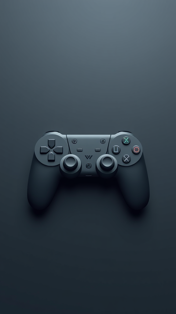 Game controller emblem vector, inspired by minimalist sculpture, incorporating dark gray and navy tones with precise perspective; focused on engineering, construction, and design elements, evoking a tactile experience reminiscent of Henry Moore's style.