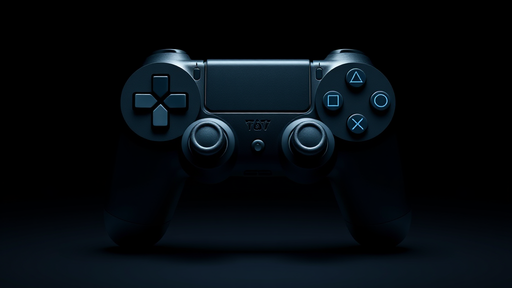 Game controller emblematic symbol vector, inspired by minimalist sculpture, featuring dark charcoal and deep blue hues, showcasing a precise and calculated perspective, rooted in the essence of engineering and architectural design, tactile and reminiscent of Henry Moore's artistry with subtle creative modifications embodying sleek modernity.
