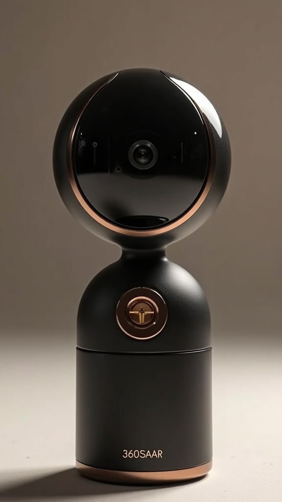 View this AI-generated image featuring a luxurious 360 degree camera featuring the name 360saar exuding elegance and sophistication in its design and functionality. Created using advanced AI technology, this image showcases creative visuals, AI artwork. Perfect for concept art.