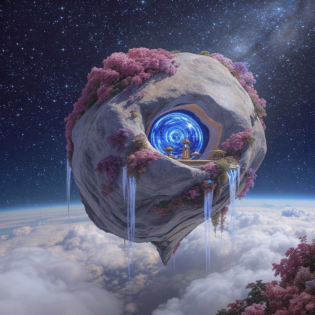 A stunning abode sculpted from a colossal asteroid, suspended in the sky::ethereal and dreamlike imagery::unbelievably breathtaking celestial haven --ar 3:4 --q 2 --v 5