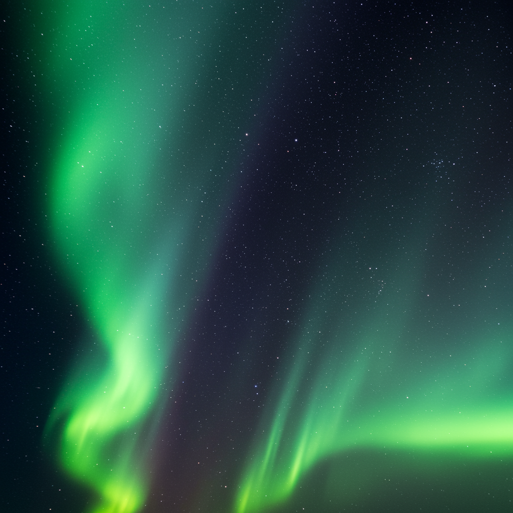 View this AI-generated image featuring aurora borealis shimmering across a clear night sky filled with twinkling stars captured in breathtaking photorealism with hyper realistic detail shot on 65mm film with an extended exposure to enhance the vivid colors and ethereal glow set in a vertical 9 16 as