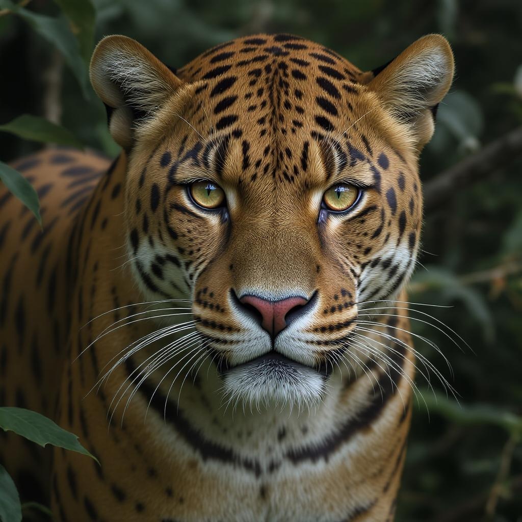 Close-up hyper-realistic image of a jaguar in its natural habitat, capturing the intricate details of its fur and intense gaze, in the style of high-end nature photography. Taken with a Sony A7III in ultra-high definition, utilizing natural lighting to highlight the jaguar's majestic presence. With an aspect ratio that emphasizes vertical composition, this photo embodies a blend of stylized realism and a touch of surreal, dreamlike quality.