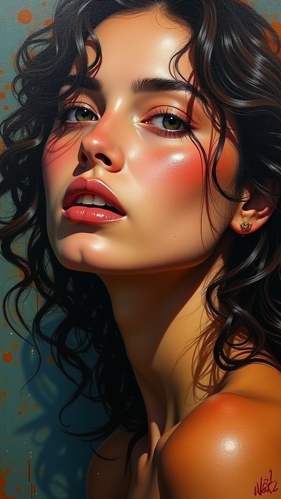 View this AI-generated image featuring a portrait of a woman crafted with a palette knife featuring thick layers of impasto embrace a dynamic composition with a chaos level of 75 maintaining an aspect ratio of 1 2 inspired by reference 3586647222 guided by profile ooro6tr and infused with a touch of