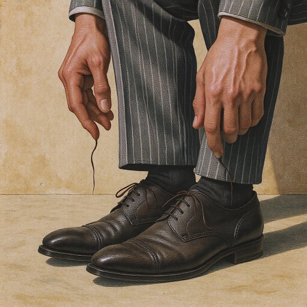 View this AI-generated image featuring the artwork is a captivating fusion of style and precision showcasing a remarkable blend of technique and creativity the pinstripe suit and the detailed stitching on the shoes stand out each element carefully fashioned to perfection the dedication to intricate