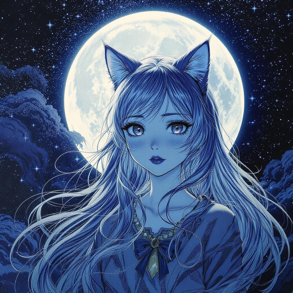 A charming girl with cat ears bathed in moonlight, center stage, showcasing intricate and highly-detailed linework, exuding breathtaking beauty with precise artistry. Vibrant and comprehensive visual akin to cinematic splendor, inspired by Carne Griffiths and Conrad Roset, rendered in 8k high-resolution to ensure the finest quality. This visually stunning piece avoids low-resolution pitfalls, text errors, anatomical inaccuracies, and artistic deformities. Free from jpeg artifacts, watermarks, and any distracting elements, it maintains focus on delicate lines and captivating details, presenting a pure expression of enchanting allure against a starry night backdrop.