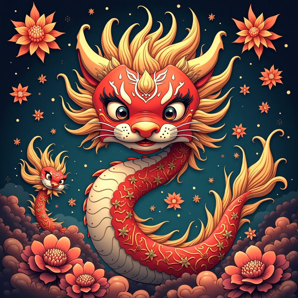 Inspiration from Chinese astrology and anime styles, featuring line drawing with clean, clear lines in a coloring book style. The art presents intricate details, elegant and exotic Asian-inspired aesthetics, capturing a sense of luck and fortune. Rendered in 8k UHD with HDR for vivid, hyperrealistic imagery, the scene is enhanced with a cinematic sensuality and depth. The artwork, created using digital tools such as Blender and Octane Render, displays a dark, atmospheric setting with a sharp focus. Vivid colors merge with anime and manga styles, featuring intricate designs that demonstrate mastery of digital art. It reflects influence from artists like Studio Ghibli and Ed Blinkey, showcasing majestic oil painting techniques with a trending presence on platforms like ArtStation and CGSociety. The scene is a hyper-detailed masterpiece with dramatic photorealism, ensuring sharp focus and high detail in a sophisticated, vibrant display.