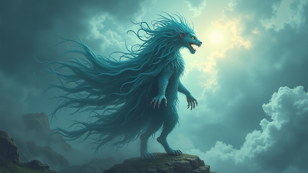 JTwister stormmender, a mystical being who travels through turbulent skies, using ancient powers to soothe raging tempests and repair the balance of nature.