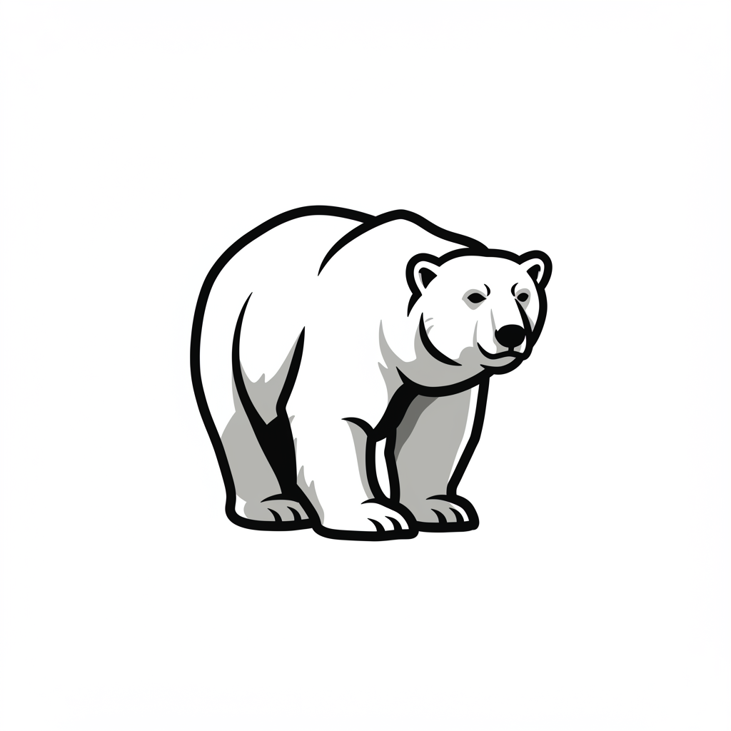 View this AI-generated image featuring a unique logo featuring a polar bear in vector style showcasing a bold and unconventional design with crisp thick lines emphasizing outline art the image is focused at the center and isolated against a clean white background subtle creative elements add distinc