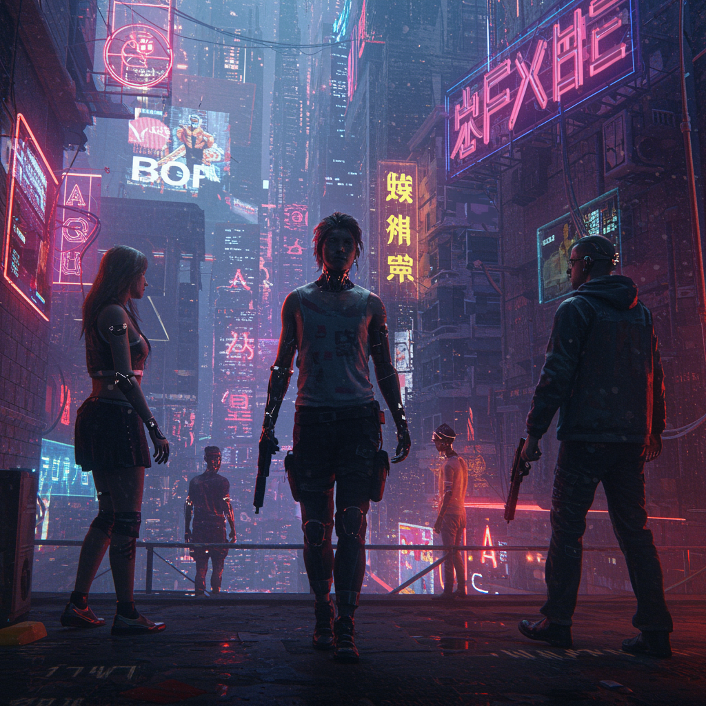 In a neon-drenched metropolis where humanity and technology have seamlessly merged, people navigate their lives as augmented beings, integrated with cybernetic enhancements that blur the line between human and machine. Skyscrapers pulse with digital veins, and the air is thick with the hum of flying vehicles and holographic advertisements. In this cybernetic society, individuality is expressed through unique combinations of mechanical and biological parts, creating a vibrant tapestry of life. Amidst the glittering cityscape, a subculture of rebels and hackers fights against a corporate oligarchy determined to control every byte of human experience, seeking freedom in a world where the virtual and the real are indistinguishable.