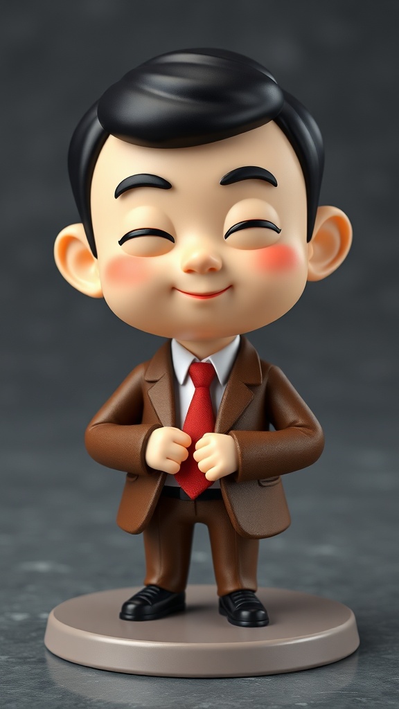 View this AI-generated image featuring 3d model nendoroid style whimsical japanese mascot art toy collectible figurine stunning 3d render product image mr bean character in relaxed poses studio ghibli inspired design vibrant and shiny mood. Created using advanced AI technology, this image showcases