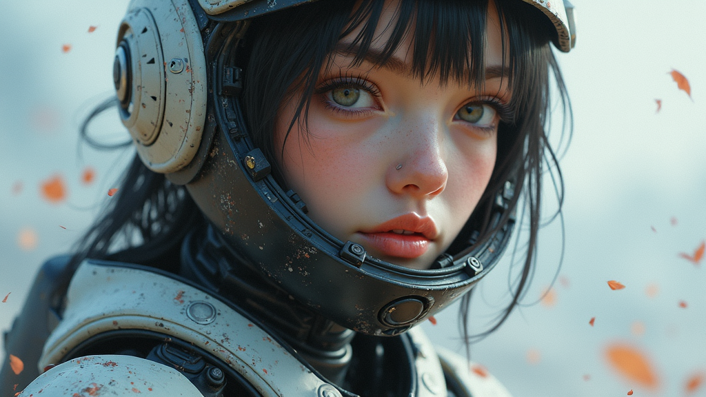 A hyper-realistic painting of a stunning girl in an EVA plugsuit with intricate details, inspired by anime, in the highly detailed style of Greg Rutkowski, trending on ArtStation with a full-length portrait showcasing her striking and captivating face. She is adorned in skimpy armor that is both realistic and cinematic. The character design and concept art highlight an exceptionally detailed appearance with a dynamic depth of field. Elements of flawed anatomy are present, with disconnected and floating limbs, mutations, and an intriguing blend of beauty and imperfection, resulting in an unsettling yet fascinating visual experience.