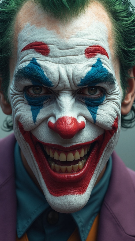 View this AI-generated image featuring pastel illustration of the joker hyperrealistic and vividly precise showcasing intricate details in ultra high definition capturing the enigmatic expression with 4k and 8k clarity subtle creative twists in the color palette add a unique flair emphasizing both c