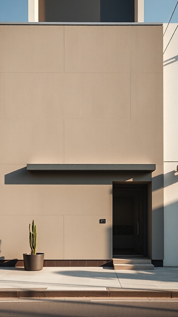 View this AI-generated image featuring photography of a minimalist small building facade design captured with a canon eos 5d mark iv showcasing a depth of field that emphasizes architectural photography the design harmoniously blends different materials in an innovative and aesthetically pleasing ma