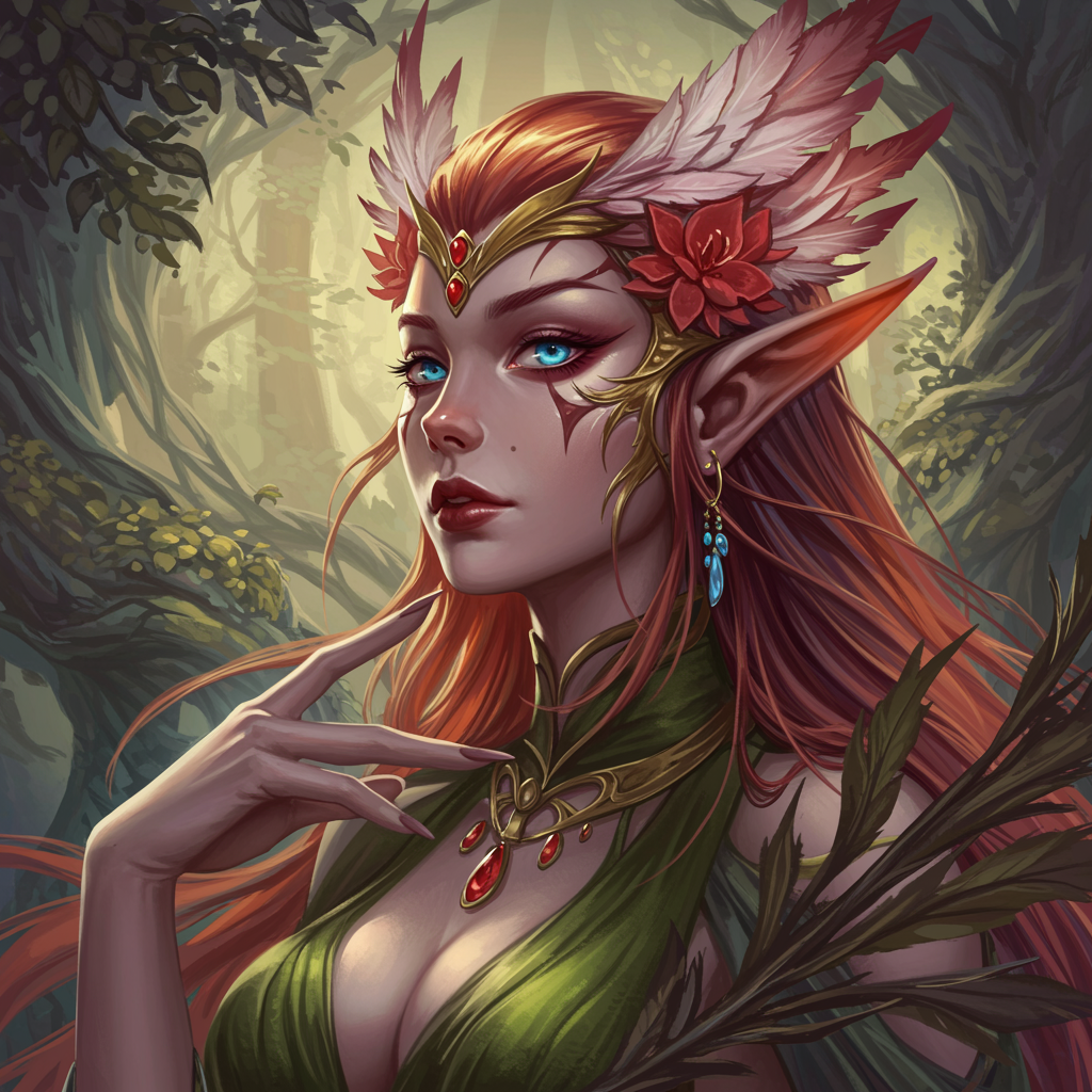 portrait of a mysterious female elf, intricate and graceful, with delicate features and highly detailed digital painting style, bursting with creativity, reminiscent of artstation concept art, smooth and vivid with a sharp focus. inspired by the artistic essence of artgerm, greg rutkowski, and alphonse mucha, the illustration showcases an ethereal glow in an 8k resolution, adorned with whispers of fantasy and a gentle hint of mysticism in the ambiance.