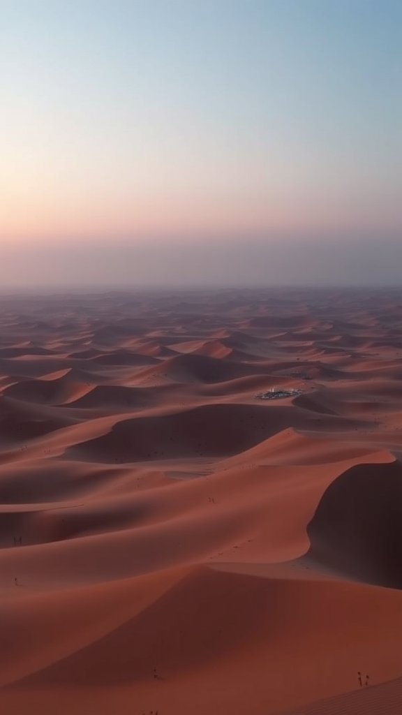 Saharan desert panorama at twilight, 4k hyper-realistic, inspired by Anton Gorlin, showcased on artstation, crisp clarity, studio-like portrayal, elaborate textures, exceptionally detailed, reminiscent of Greg Rutkowski's style, with subtle creative alterations.