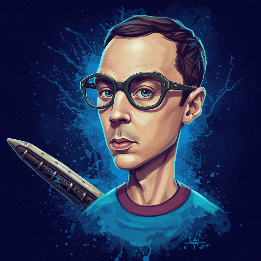 View this AI-generated image featuring steampunk inspired digital artwork intense close up of a cromulent character dressed as sheldon cooper embodying an athlete s spirit in a normcore style dramatic accent lighting captured with a telephoto lens vibrant agfacolor tones highlighted by splashes of e
